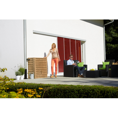 Deze kunststof regenton met lichte houtlook kunt u direct aansluiten op uw regenwaterafvoer, waarna u het water kunt gebruiken om uw tuin te besproeien.